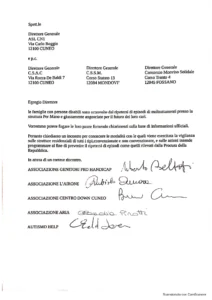 Spett.le Direttore GeneraleASL CN1 Via Carlo Boggio12100 CUNEO e p.c. Direttore GeneraleC.S.A.C Via Rocca De Baldi 712100 CUNEO Direttore GeneraleC.S.S.M. Corso Statuto 1312084 MONDOVI’ Direttore